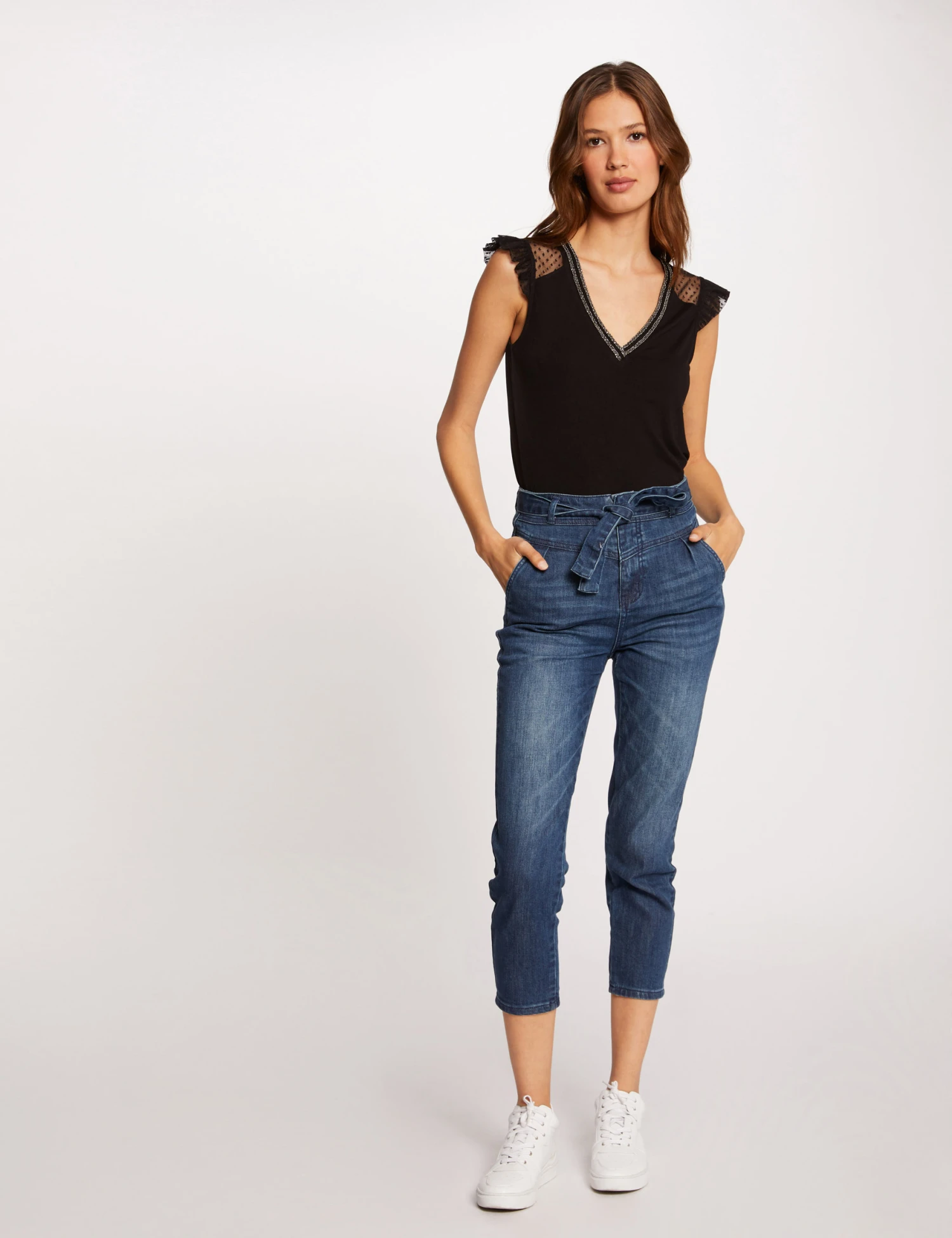 Le mannequin mesure 1m75 et porte une taille S/36